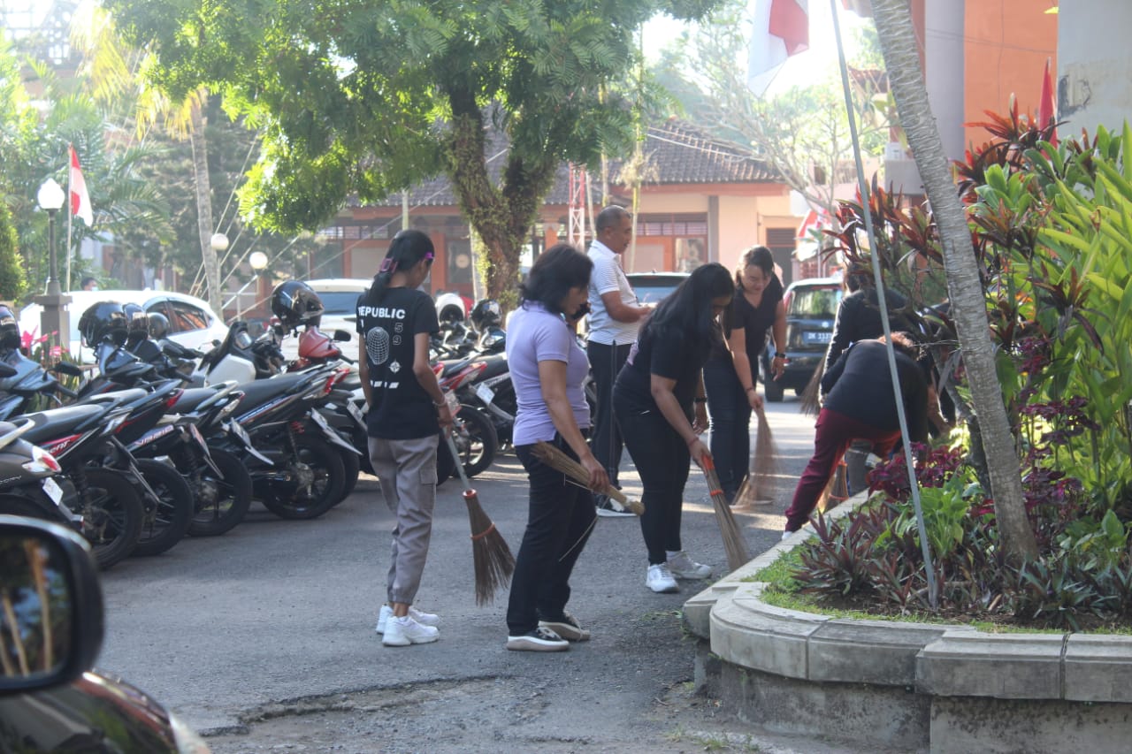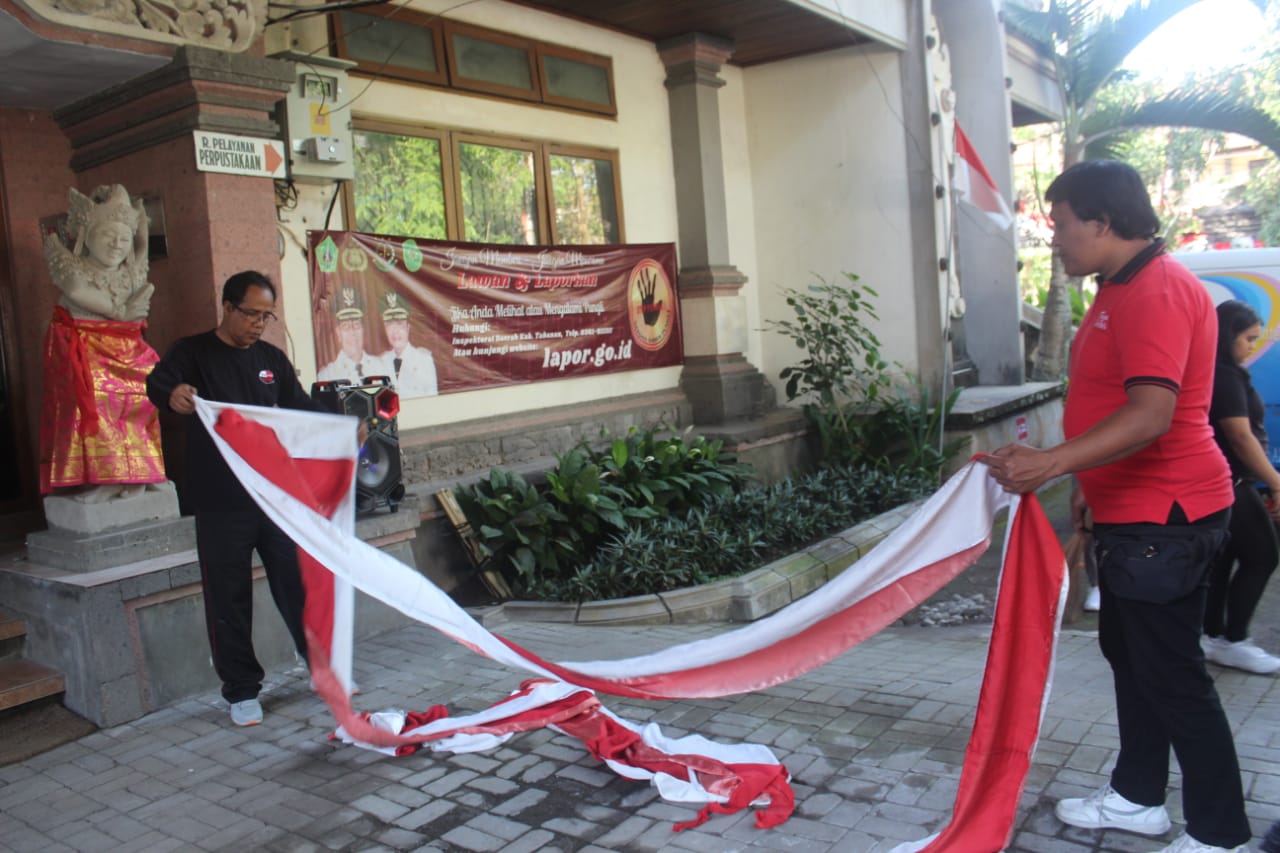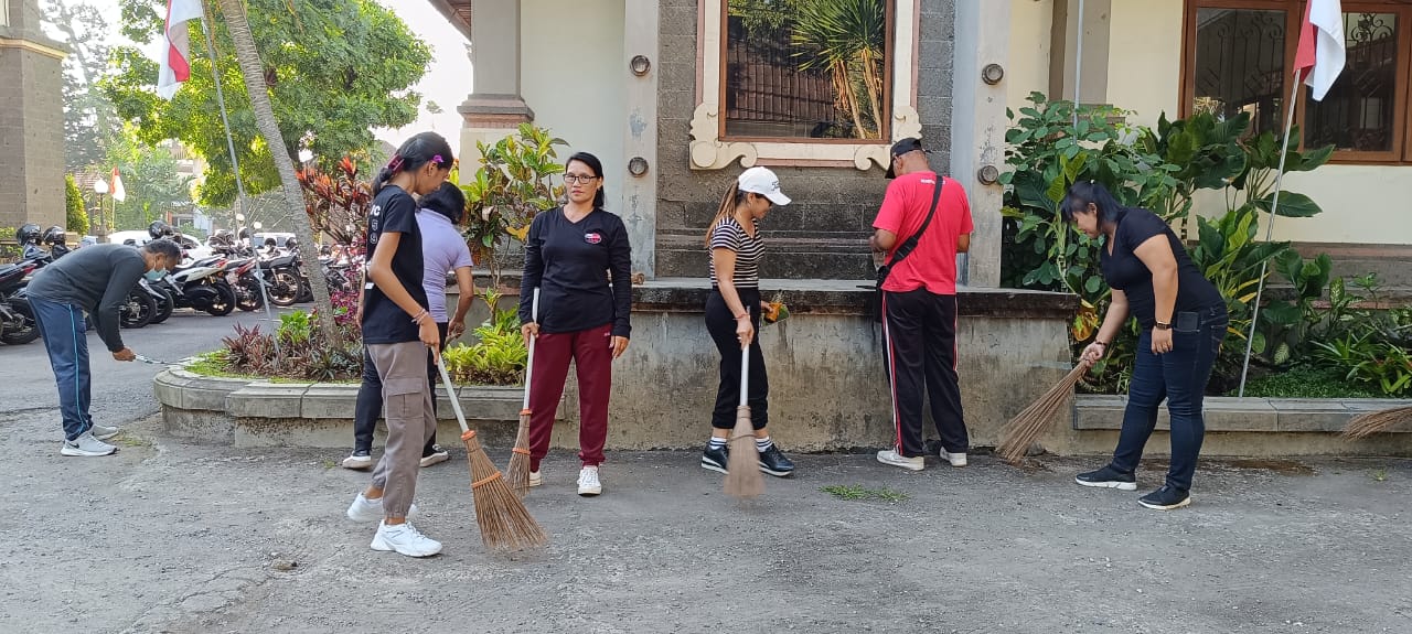 KEGIATAN BERSIH BERSIH DI LINGKUNGAN KANTOR DAN PEMASANGAN BENDERA MERAH PUTIH