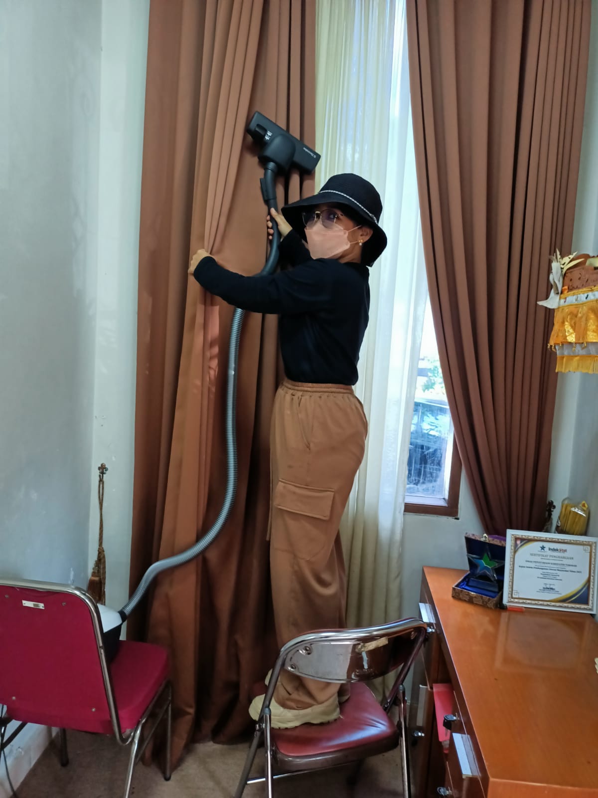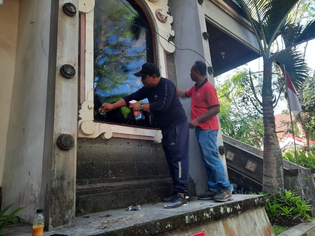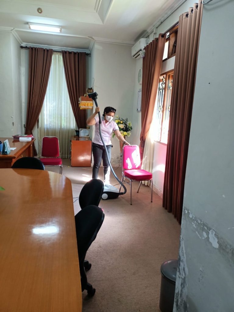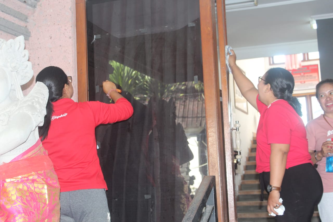 KEGIATAN BERSIH BERSIH DI LINGKUNGAN KANTOR DAN PEMASANGAN BENDERA MERAH PUTIH